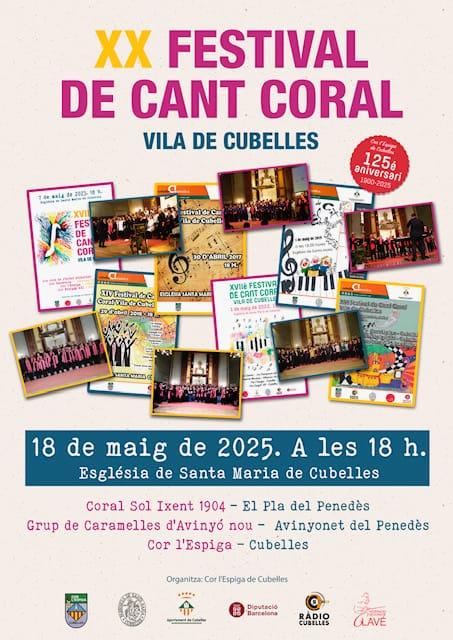El pròxim 18 de maig de 2025, a les 18.00 h, l’església de Santa Maria de Cubelles serà l’escenari del 20è Festival de Cant Coral Vila de Cubelles, una cita musical molt arrelada al municipi, que enguany servirà també com a acte de cloenda de la 51a Setmana Cultural de Cubelles.