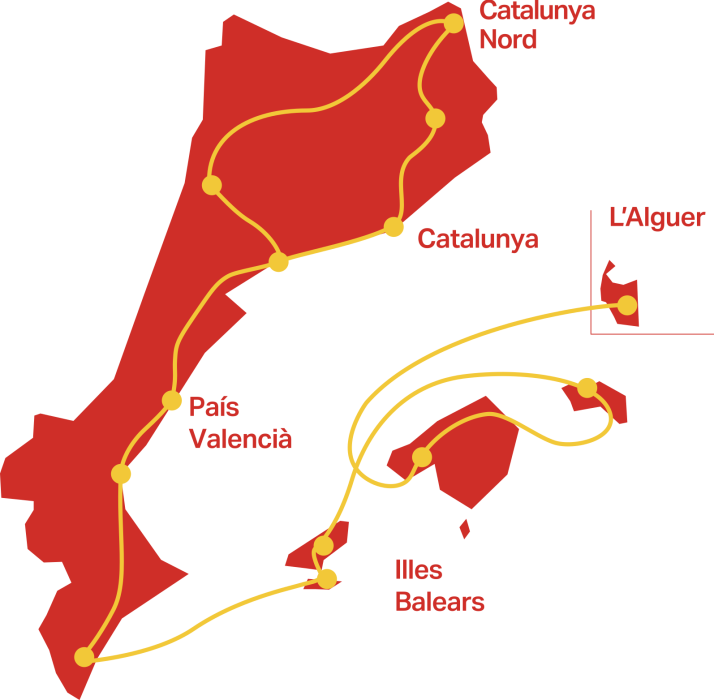 El Correllengua agermanat es planteja com un recorregut que abraça Catalunya Nord, Catalunya, País Valencià, Illes Balears i l’Alguer.