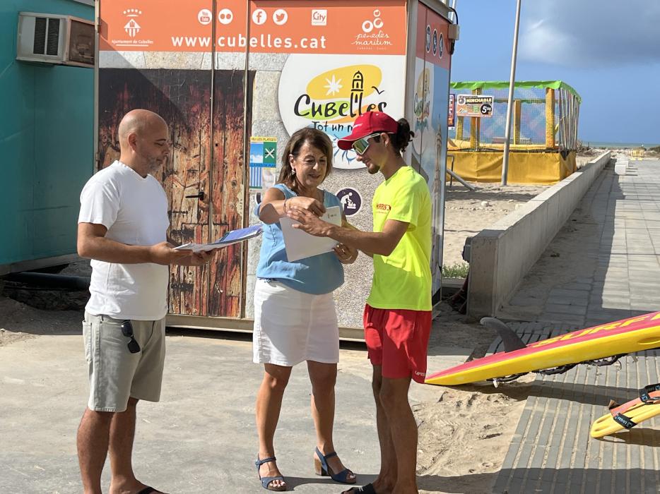 El servei de socorrisme encara continua aquest cap de setmana i es donarà per tancat dilluns 15 de setembre. Prèviament, aquest divendres, l'alcaldessa Rosa Fonoll i el regidor Àlex Noheda han lliurat uns diplomes d'agraïment en nom de tot l'Ajuntament als socorristes que han treballat a les platges de Cubelles.