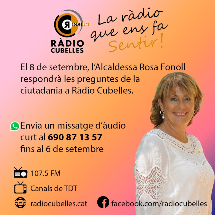 El programa "L'alcaldessa respon" torna a la graella el dijous 8 de setembre. El període per poden enviar preguntes es manté obert (fins al 6 de setembre), mitjançant una nota de veu de whatsapp al número 690871357.