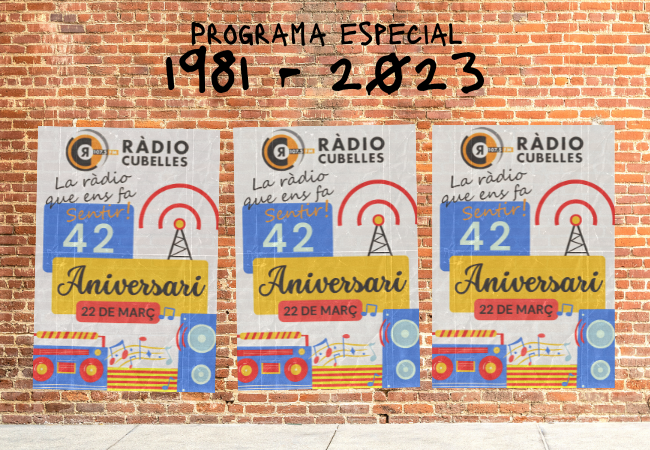 El 22 de març Ràdio Cubelles farà 42 anys que va començar a emetre oficialment. A més, aquest 2023 fa 40 anys que l'emissora va inaugurar els estudis ubicats al capdamunt del Casal de Cultura, on encara continua actualment. Aquesta efemèride serà un dels temes centrals del programa especial que Ràdio Cubelles oferirà en directe el mateix dimecres 22 de març a partir de les 10 h.