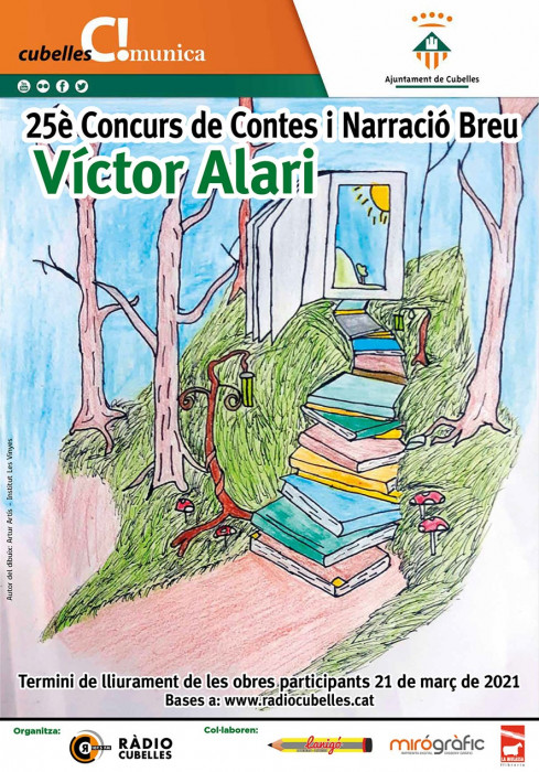 L’emissora municipal, Ràdio Cubelles ha convocat la 25a edició del concurs de Contes i Narració Breu Víctor Alari, en reconeixement a qui fou el seu primer director. Per tal d'afavorir una major concurrència s'ha ampliat el termini de presentació d'obres que es poden presentar de la següent manera: