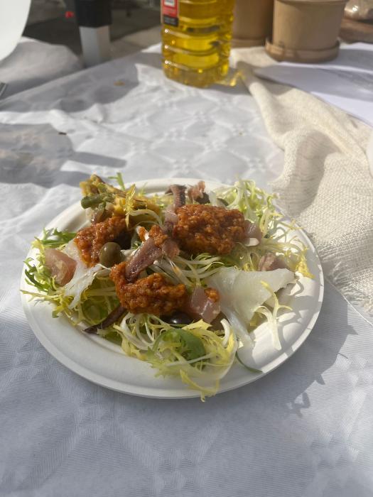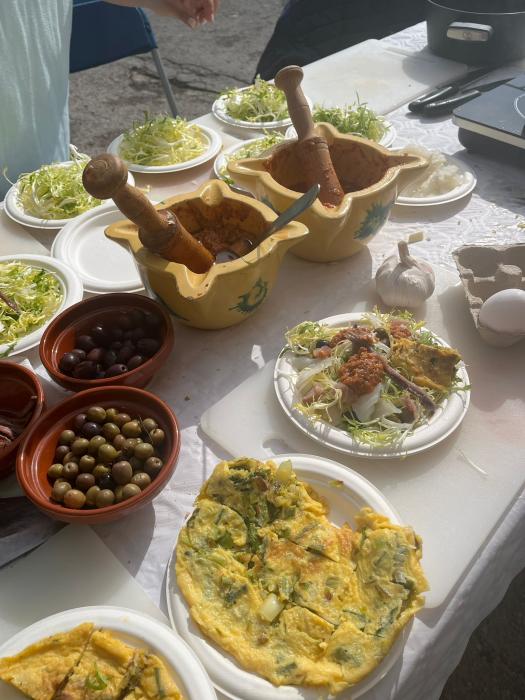 L’activitat s'ha realitzat amb productes adquirits al mateix mercat, reforçant el comerç local i destacant la qualitat dels aliments frescos i de temporada. Com a part final del taller, les participants han elaborat i repartit una vintena de racions de xató acompanyat de truita, que han estat degustades per les persones assistents.