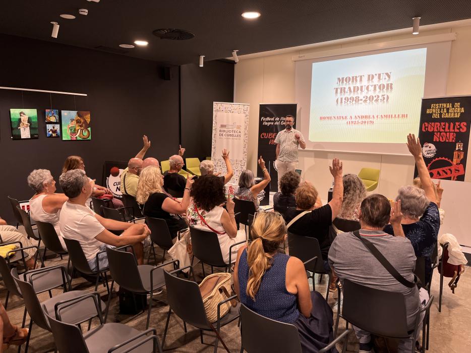 El relleu l'ha agafat Pau Vidal, filòleg, traductor i escriptor, que ha ofert una xerrada vinculada al centenari d'Andrea Camilleri, autor sicilià conegut sobretot per les novel·les protagonitzades pel comissari Montalbano. Vidal, traductor al català de les obres de Camilleri, ha explicat les dificultats d'aconseguir traslladar l'esperit dels llibres de Camilleri, que combina dues llengües, el sicilià i l'italià, cap al català, sense perdre el sentit dels textos originals. Amb humor i la participació dels assistents, la xerrada s'ha convertit en el plat fort de la primera jornada, que s'ha tancat cap a quarts de nou amb els discursos del comissari del festival, Xavier Borrell, i la regidora de Cultura, Renata Bedós, que han convidat a continuar gaudint fins diumenge de totes les propostes vinculades al gènere negre.