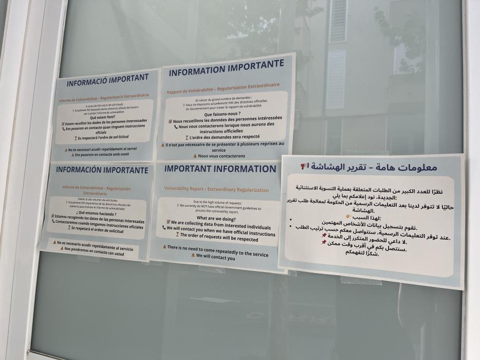 Les oficines de Benestar Social han penjat uns cartells informatius en diverses llengües per avisar que s’estan recollint les dades de les persones interessades per posar-s’hi en contacte més endavant, quan tinguin més informació sobre les directrius del procés.