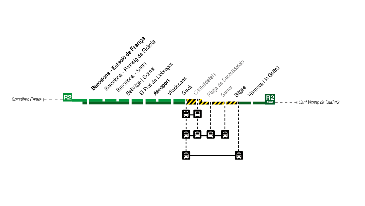 Unes obres a l’estació de Castelldefels obligaran als usuaris a fer una part del viatge fins a Barcelona en el transport alternatiu per carretera que, segons Renfe, unirà les estacions de Sitges i Gavà en totes dues direccions.