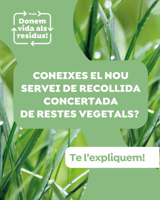 Pel que fa a les restes vegetals, s’admeten branques, troncs, fullaraca en grans quantitats i gespa amb volum fins a més de 100 litres. Les quantitats més petites es poden abocar als contenidors d’orgànica.